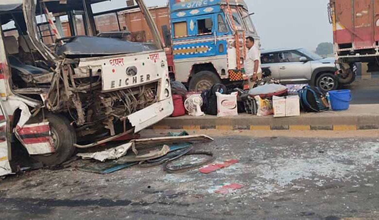 छपरा में तेज रफ्तार ट्रक ने पुलिसकर्मियों की बस को टक्कर मार दी। हादसे में 17 पुलिसकर्मी घायल हो गए। इन्हें अस्पताल में भर्ती करवाया गया है। बताया जा रहा है कि पीएम मोदी के कार्यक्रम की सुरक्षा में तैनात किए गए यह सभी पुलिसकर्मी डेहरी ऑन सोन से सीवान जा रहे थे। छपरा में इनकी बस को तेज रफ्तार ट्रक ने टक्कर मार दी। हादसे में बस चालक को गंभीर रूप से घायल हो गए। उसे बेहतर इलाज के लिए हायर सेंटर रेफर कर दिया गया है। बस चालक की पहचान छपरा के गौतम प्रसाद निवासी रमेश कुमार (35 वर्ष) के रूप में हुई है।
