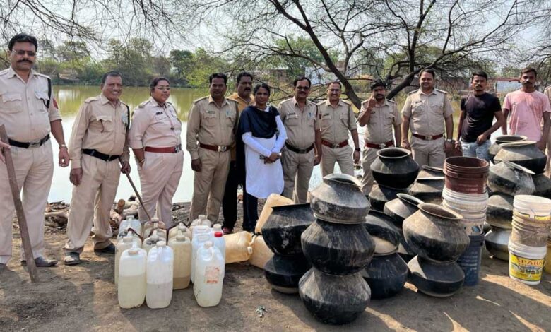 दुर्ग जिले में 200 लीटर महुआ शराब और 4,000 किलो लाहन जब्त