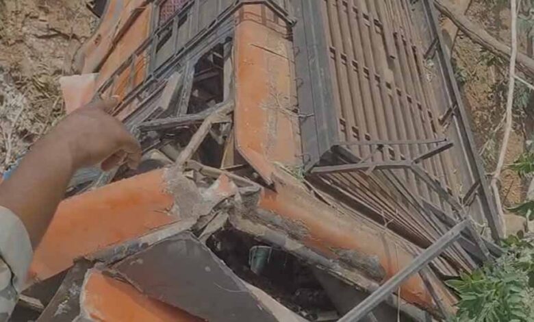 पहाड़ी पर घुमावदार सड़क के ऊपरी हिस्से से ही बस नीचे गिरी। इस दौरान कई पेड़ भी धराशायी होते चले गए। बस पूरी तरह से क्षतिग्रस्त हो चुकी है।