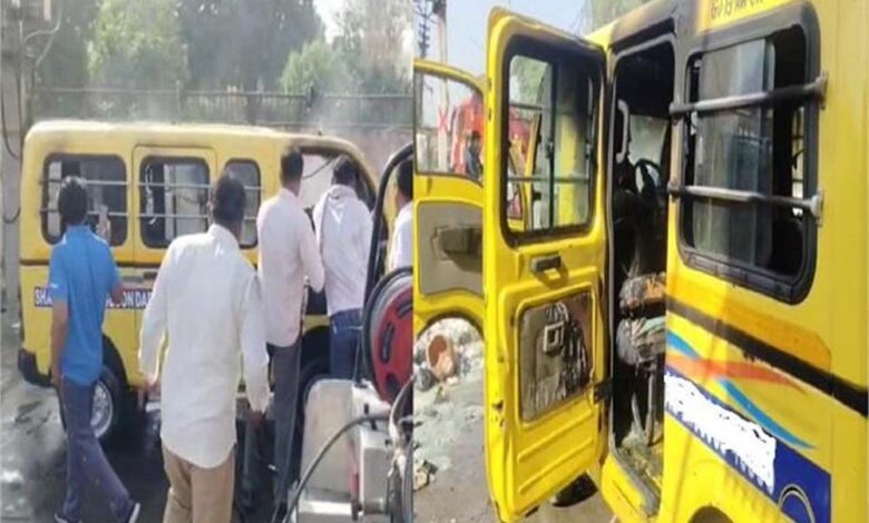 फतेहाबाद शहर के भट्टू रोड पर एक स्कूल वैन में लगी आग, अंदर मौजूद थे बच्चे