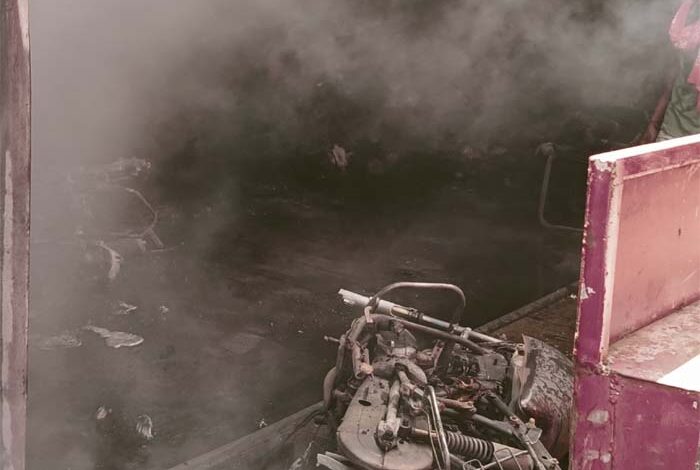 नगर के कृषि उपज मंडी प्रांगण स्थित टीन शेड से बने अनाज गोदाम में अचानक लगी आग, 100 क्विंटल सोयाबीन व 8 बाइक खाक