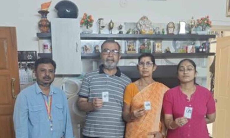 तस्वीर में परिवार के सदस्य अपने आवास पर मतदाता पहचान पत्र दिखाते हुए नजर आ रहे हैं। चुनाव आयोग के सूत्रों ने बताया कि परिवार के तीन सदस्य ओम प्रकाश बागड़ी, सरस्वती देवी बागड़ी और माला बागड़ी हैं।