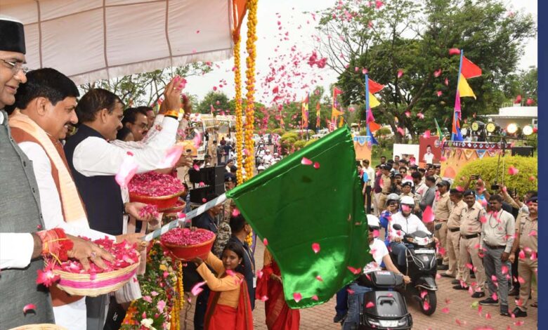 मुख्यमंत्री डॉ. यादव ने अहिल्या वाहिनी महिला बाइक रैली और माँ तुझे प्रणाम योजना के अंतर्गत महिला प्रतिभागियों की बस को शौर्य स्मारक से झंडी दिखाकर किया रवाना