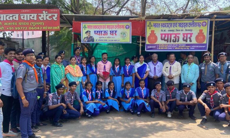 भारत स्काउट्स और गाइड्स छत्तीसगढ़ द्वारा एक माह तक निरंतर चलने वाले प्याऊ घर का आज सम्पूर्ण राज्य में एक साथ  शुभारंभ हुआ। इसी तारतम्य में बिलासपुर जिला में 6 स्थानों पर प्याऊ घर का शुभारंभ राज्य मुख्य आयुक्त डा सोमनाथ यादव के करकमलों से हुआ। ग्रीष्मकाल की तीव्र गर्मी को देखते हुए प्यासे राहगीरों को राहत पहुंचाने हेतु प्रति वर्ष की भांति इस वर्ष भी जिले के 6 अलग – अलग क्षेत्रों में 9 अप्रैल को प्याऊ घर का भव्य उद्घाटन डॉ. सोमनाथ यादव  के द्वारा किया गया। इस अवसर पर विशिष्ट अतिथि के रूप में जिला मुख्य आयुक्त  चंद्रप्रकाश बाजपेयी, कार्यक्रम अध्यक्ष डॉ अनिल तिवारी जिला शिक्षा अधिकारी,राज्य संगठन आयुक्त स्काउट विजय कुमार यादव, व सहायक राज्य आयुक्त स्काउट श्री भूपेंद्र शर्मा उपस्थित थे।