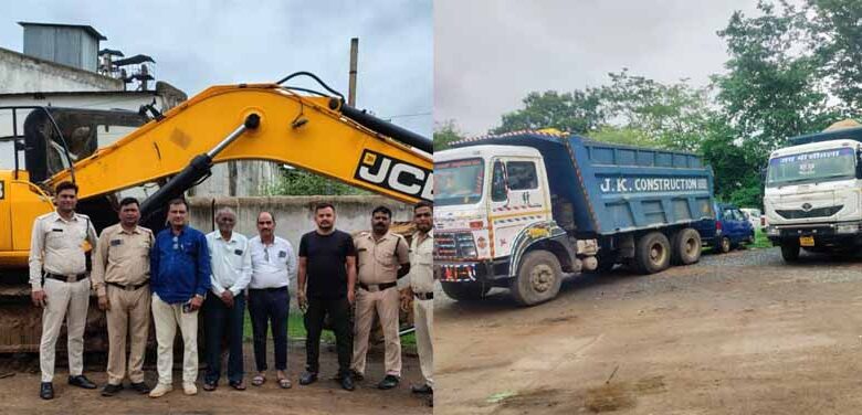 अभनपुर में खनिज विभाग की बड़ी कार्रवाई, अवैध रेत खनन में लगी मशीन और 7 हाईवा जब्त
