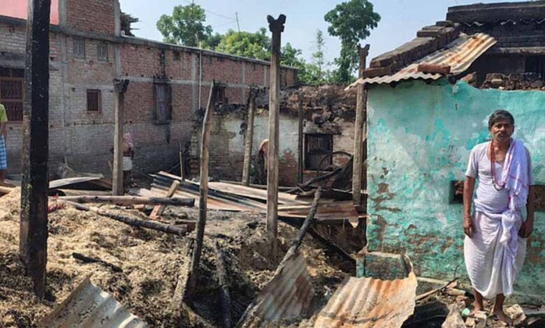 मधुबनी में आग की बड़ी घटना, तीन परिवारों के चार घर खाक, एक मवेशी की मौत