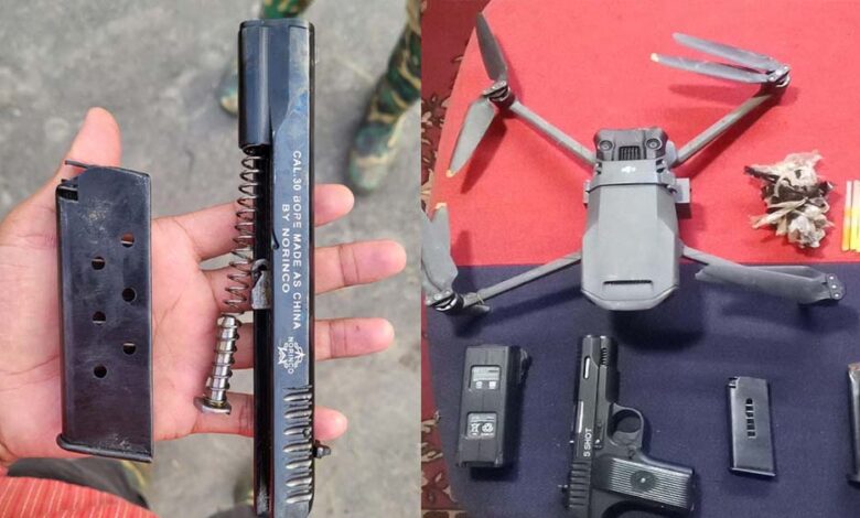 ड्रोन से बरामद हेरोइन और हथियार