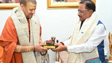 मुख्यमंत्री विष्णु देव साय से निरंजन पीठाधीश्वर महामंडलेश्वर डॉ. स्वामी कैलाशनंद गिरी जी महाराज ने की सौजन्य भेंट