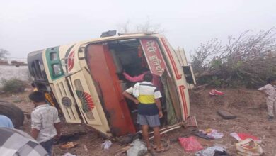 तेज रफ्तार यात्री बस अनियंत्रित होकर पलटी , 20 से अधिक यात्री घायल