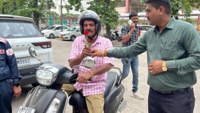 इंदौर के सरकारी दफ्तरों में बिना हेलमेट एंट्री नहीं! पहनने वालों का हो रहा स्वागत