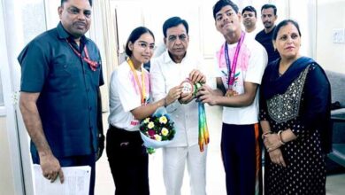 उप मुख्यमंत्री देवड़ा से मिले नेशनल चैम्पियनशिप विजेता आर्म रेसलर भाई-बहन रोहित और खुशी