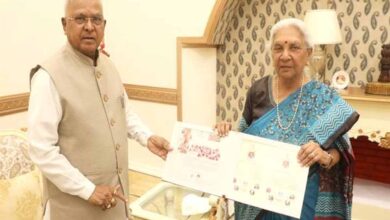 राज्यपाल मंगुभाई पटेल से उत्तरप्रदेश की राज्यपाल श्रीमती आनंदीबेन पटेल की सौजन्य भेंट