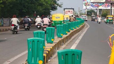 इंदौर के शास्त्री ब्रिज पर नया प्रयोग, लोहे के हटाकर अब प्लास्टिक के डिवाइडर लगाए