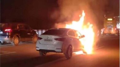 फ्लाईओवर पर चलती कार में लगी आग, देखते ही हर कोई दहशत में आ गया