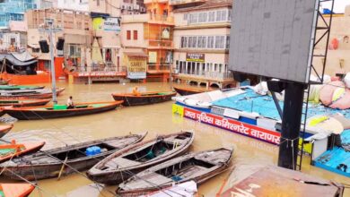गंगा का रौद्र रूप: विश्वनाथ मंदिर की सीढ़ियों को डुबोया, अस्सी घाट पर सड़क तक पहुँचा पानी