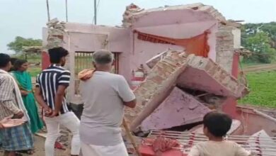 अनियंत्रित हाइवा ने मंदिर को ढहाया, मलबे में दबा शख्स