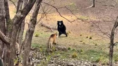 रणथंभौर टाइगर रिजर्व में बाघ और भालू आमने-सामने, पर्यटकों ने अपने कैमरों में कैद