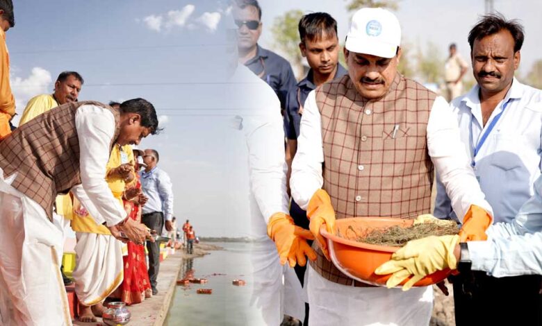 मुख्यमंत्री डॉ. यादव ने जलदूतों के साथ जल गंगा संवर्धन अभियान में राजगढ़ जिले के सारंगपुर में किया श्रमदान