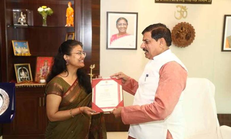 मुख्यमंत्री डॉ. यादव ने सुश्री शीला दाहिमा को मुख्यमंत्री उत्कृष्टता पुरस्कार 2022-23 से सम्मानित किया