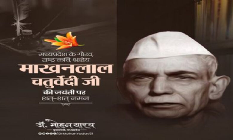मुख्यमंत्री डॉ. मोहन यादव ने प्रदेश के गौरव और हिन्दी पत्रकारिता के पुरोधा, राष्ट्रकवि पं. माखनलाल चतुर्वेदी की जयंती पर उन्हें नमन किया है। मुख्यमंत्री डॉ. यादव ने कहा कि उनकी लेखनी ने भारतीय स्वाधीनता आंदोलन को नई ऊर्जा दी और राष्ट्रभक्ति की भावना को सशक्त किया। पुष्प की अभिलाषा, सिपाही, सागर खड़ा बेड़ियाँ तोड़े… जैसी उनकी अनेक कालजयी कृतियां भावी पीढ़ियों को त्याग एवं देशभक्ति के लिए अनुप्रेरित करती रहेंगी।