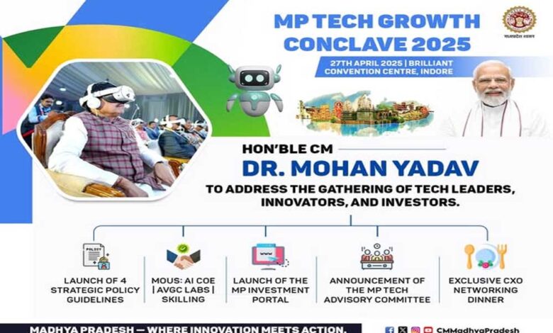 मध्यप्रदेश को टेक्नोलॉजी और डिजिटल नवाचार का केन्द्र बनाने के उद्देश्य से आयोजित  ‘एमपी टेक ग्रोथ कॉन्क्लेव 2025’ का शुभारंभ मुख्यमंत्री डॉ. मोहन यादव 27 अप्रैल को इंदौर के ‘ब्रिलिएंट कन्वेंशन सेंटर’  में करेंगे। मुख्यमंत्री डॉ. यादव ने उम्मीद जताई है कि कॉन्क्लेव देश-दुनिया के टेक दिग्गजों के लिए निवेश का स्वर्णिम अवसर सिद्ध होगा। राज्य के विज्ञान एवं प्रौद्योगिकी विभाग का ये कॉन्क्लेव आयोजन जीआईएस-भोपाल में आए निवेश प्रस्तावों को मूर्त रूप देने का महत्वपूर्ण प्रयास है।
