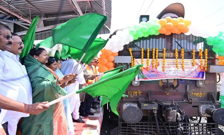 मुख्यमंत्री तीर्थ दर्शन योजना : मंत्री श्रीमती लक्ष्मी राजवाड़े ने हरी झंडी दिखाकर विशेष ट्रेन को किया रवाना