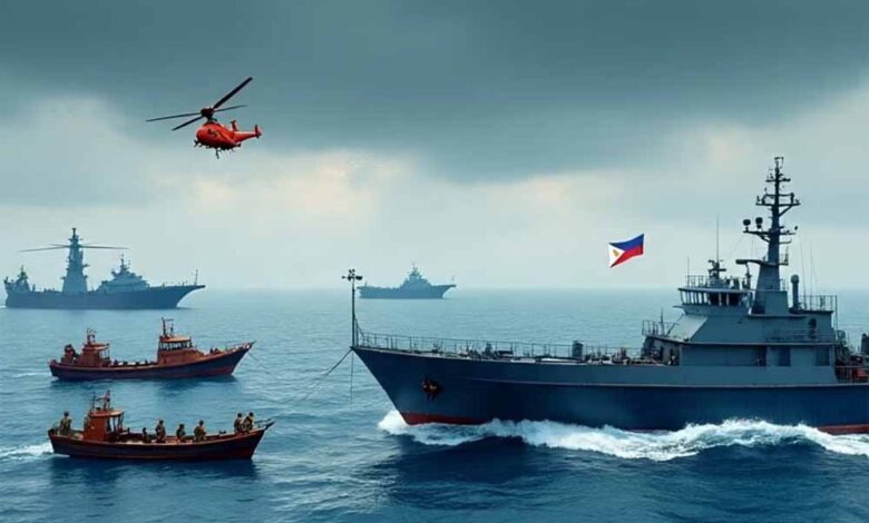 फिलीपींस की सेना ने एक बयान में कहा, "चीनी तटरक्षक बल के जहाजों को समुद्र में पानी की बौछारों का इस्तेमाल करते हुए युद्धाभ्यास और अभ्यास करते देखा गया है, जबकि कई छोटे जहाज, जैसे कठोर पतवार वाली फुलाने वाली नावें और तेज नावें, भी उथले पानी में तैनात की गई हैं। चीनी तटरक्षक बल की कुछ तेज नावें भारी चालक दल वाले हथियारों सहित माउंटेड हथियारों से लैस देखी गईं।"