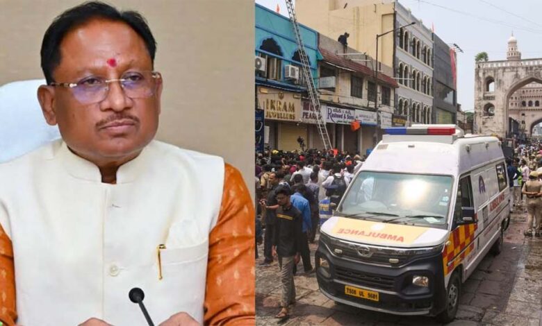 सीएम विष्णुदेव साय ने एक्स पर पोस्ट कर लिखा, हैदराबाद के चारमीनार के निकट हुए भीषण अग्निकांड में 17 लोगों की असमायिक मृत्यु और कई लोगों के घायल होने का हृदयविदारक समाचार प्राप्त हुआ है। मैं उन सभी दिवंगत आत्माओं के प्रति अपनी गहरी संवेदना व्यक्त करता हूं और ईश्वर से प्रार्थना करता हूं कि उन्हें अपने श्री चरणों में स्थान दें। साथ ही इस हादसे में घायल हुए सभी लोगों के शीघ्र और पूर्ण स्वस्थ होने की प्रार्थना करता हूं।