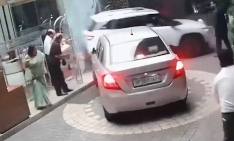 महिला अधिवक्ता की कार ने ली रफ्तार, होटल की दीवार तोड़ी — सीसीटीवी फुटेज वायरल