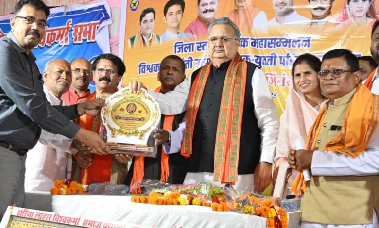 सरकार लोहार समाज के लिए नई सोच के साथ कार्य करेगी। इस अवसर पर छन्नी, झेझरी, औजार निर्माण कार्य कर अपनी आजीविका चलाने वाली महिलाओं को सम्मानित किया गया। कार्यक्रम को प्रदेश अध्यक्ष लोहारा विश्वकर्मा समाज धनीराम विश्वकर्मा, प्रदेश उपाध्यक्ष लोहार विश्वकर्मा समाज बाबूलाल विश्वकर्मा, जिला अध्यक्ष लोहार विश्वकर्मा समाज राधेलाल विश्वकर्मा ने भी संबोधित किया। इस अवसर पर समाज सेवी कोमल सिंह राजपूत, जिला पंचायत अध्यक्ष श्रीमती किरण वैष्णव, रविन्द्र वैष्णव, पार्षद आलोक श्रोती, प्रखर गुप्ता, नगर निगम आयुक्त अतुल विश्वकर्मा, एसडीएम राजनांदगांव खेमलाल वर्मा सहित समाज के लोग एवं अन्य जनप्रतिनिधि उपस्थित थे।