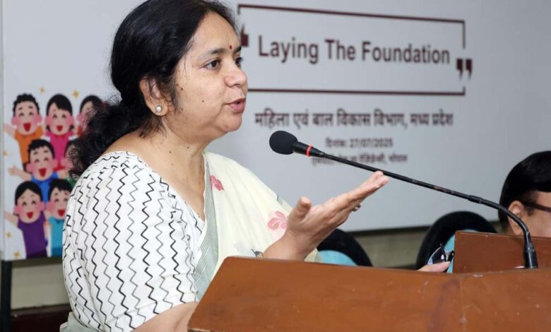अपर मुख्य सचिव श्रीमती शमी रविवार को मुख्य सचिवों के 5वें राष्ट्रीय सम्मेलन के अंतर्गत “Human Capital for Viksit Bharat” विषय की उप-थीम “ECCE: Laying the Foundation” पर महिला एवं बाल विकास विभाग द्वारा रविवार को भोपाल के होटल लेक व्यू रेसीडेंसी में आयोजित कार्यशाला को संबोधित कर रही थी।