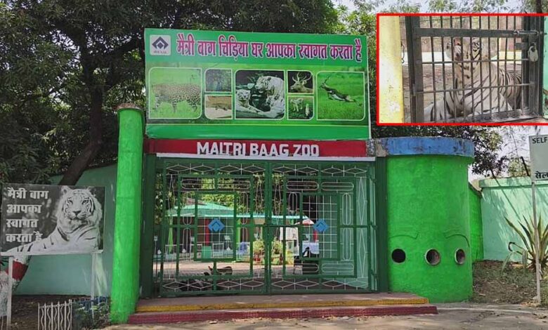 मैत्री बाग जू में वन्यजीवों को तपिश से बचने व्यापक इंतजाम, सफेद शेरों के इनक्लोजर में पानी का छिड़काव