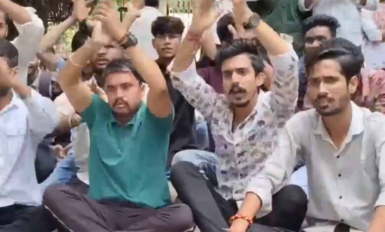 18 अगस्त की परीक्षा रद्द करने की मांग पर एनएसयूआई-एबीवीपी का कॉलेज में धरना