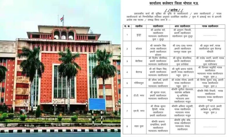 वहीं, बैरागढ़ में खूनी प्रसाद पडोले को अपर तहसीलदार की जिम्मेदारी दी गई है। गोविंदपुरा में तहसीलदार सौरभ वर्मा और अपर तहसीलदार राजेश गौतम रहेंगे। टीटी नगर की कमान कुनाल रावल और अपर तहसीलदार सुनीता देहलवार होंगी।