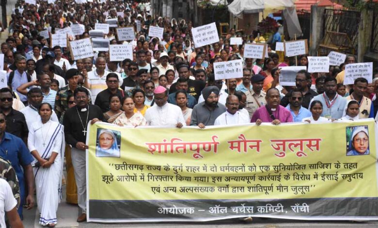 रांची में शांतिपूर्ण मौन जुलूस, छत्तीसगढ़ में दो धर्म बहनों की गिरफ्तारी का विरोध