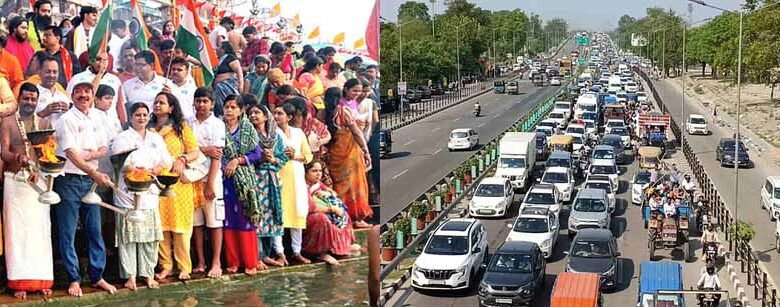 गंगा में लगाई आस्था की डुबकी, हाईवे पर लगा जाम
