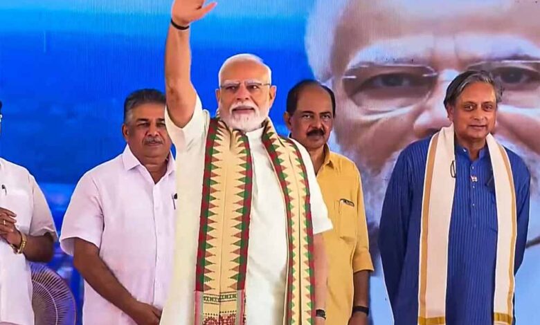 प्रधानमंत्री नरेंद्र मोदी ने शुक्रवार को केरल के तिरुवनंतपुरम में विझिनजम इंटरनेशनल सीपोर्ट परियोजना के पहले चरण का उद्घाटन किया। इस दौरान उनके साथ मंच पर केरल के मुख्यमंत्री पिनराई विजयन और कांग्रेस सांसद शशि थरूर भी मौजूद थे। बंदरगाह का उद्घाटन करने के बाद मोदी ने केरल के मुख्यमंत्री पिनराई विजयन को विपक्षी दलों के ‘इंडिया’ गठबंधन का एक ‘‘स्तंभ’’ बताया और उन्हें एवं मंच पर मौजूद कांग्रेस सांसद शशि थरूर से कहा कि उद्घाटन समारोह कई लोगों की ‘‘रातों की नींद हराम’’ कर देगा।