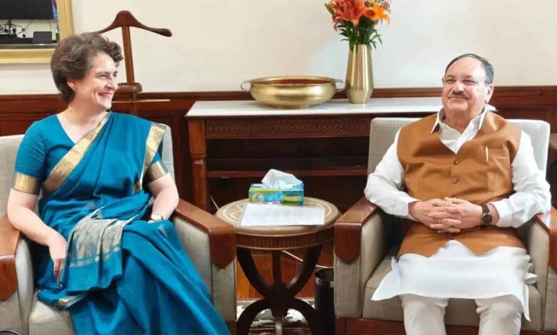 प्रियंका गांधी और जेपी नड्डा की बैठक, स्वास्थ्य सेवाओं पर चर्चा