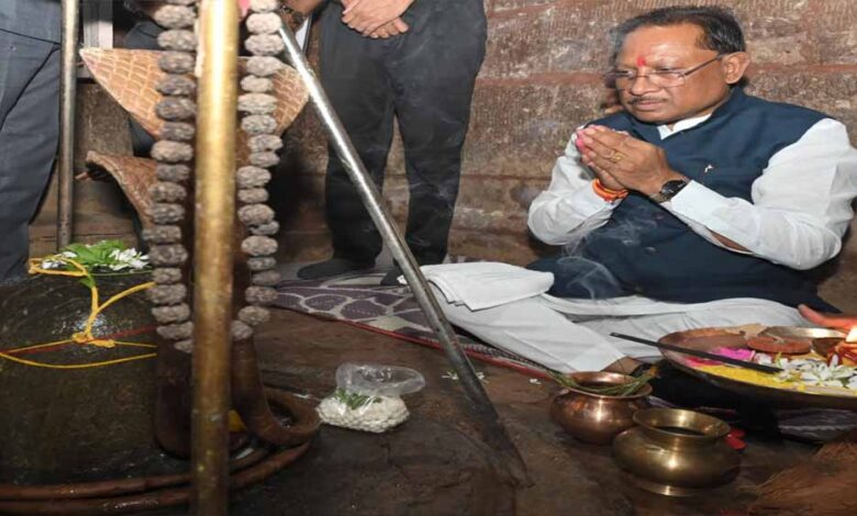 रायपुर : मुख्यमंत्री ने तेरहवीं शताब्दी के प्राचीन शिव व हनुमान मंदिर के किए दर्शन