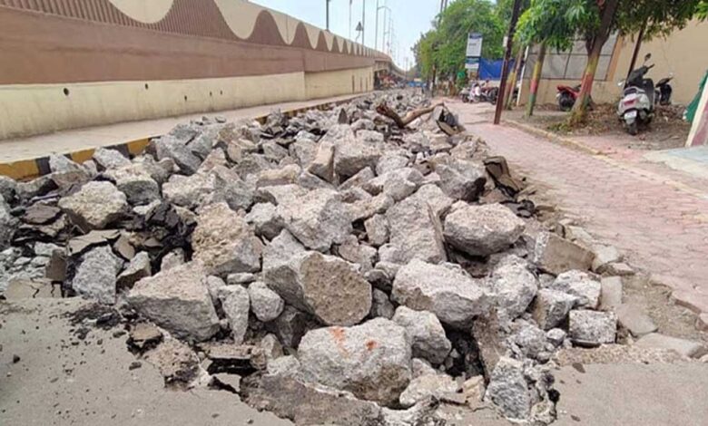 खजराना चौराहे से गणेश मंदिर तक की सर्विस रोड की मरम्मत का काम शुरू