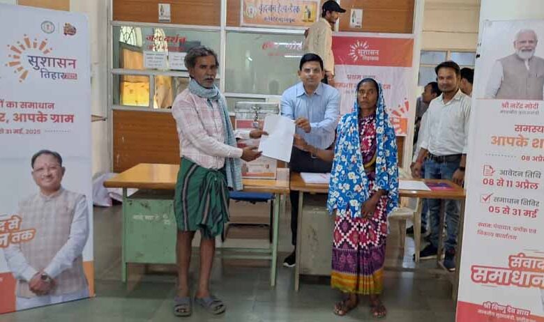 मुख्यमंत्री विष्णु देव साय के मार्गदर्शन में जनता-जनार्दन की समस्याओं के निदान और उनसे रूबरू मुलाकात के लिए सुशासन तिहार का प्रदेशव्यापी शुभारंभ आज 08 अप्रैल से हो गया है। तीन चरणों में आयोजित होने वाला यह सुशासन तिहार 31 मई तक चलेगा। प्रथम चरण में 8 अप्रैल से 11 अप्रैल तक आम जनता से ग्राम पंचायतों एवं नगरीय निकायों के कार्यालयों में सीधे आवेदन लिए जा रहे हैं। सुशासन तिहार को लेकर लोगों में जबरदस्त उत्साह देखने को मिल रहा है, और लोग अपनी समस्याओं से संबंधित आवेदन लेकर उसे ग्राम पंचायत और नगर पंचायत कार्यालयों में लगी समाधान पेटी में जमा कर रहे है।