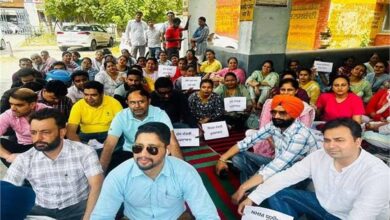राष्ट्रीय स्वास्थ्य मिशन के कर्मचारियों ने मांगो को लेकर भीषण गर्मी के बावजूद नेताओं ने शहर में रोष मार्च निकाला