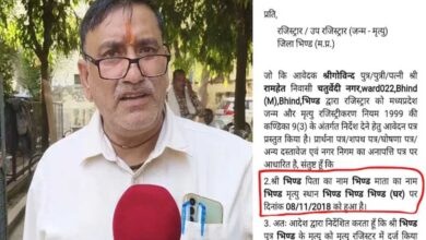 तहसीलदार ने जारी कर दिया भिंड का डेथ सर्टिफिकेट