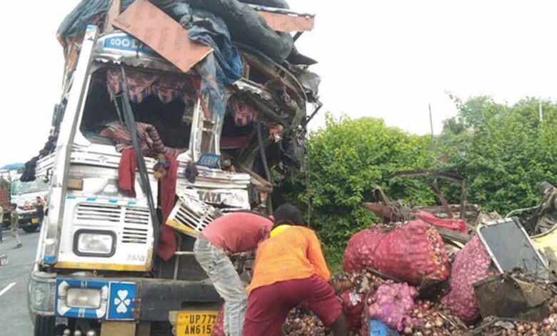 सामने से टकराए दो ट्रक: चालक और खलासी की दर्दनाक मौत, दो घंटे तक लगा रहा जाम