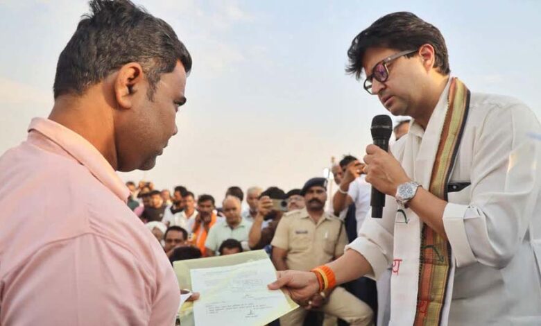 केंद्रीय मंत्री ज्योतिरादित्य सिंधिया अशोकनगर पहुंचे, चश्मे में काफी स्टाइलिश लगे