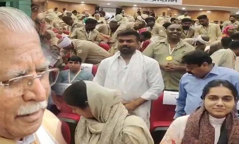 करनाल के कल्पना चावला मेडिकल कॉलेज सभागार में शनिवार को हुए सफाई मित्र सम्मान समारोह में केंद्रीय मंत्री एवं पूर्व सीएम मनोहर लाल खट्टर ने जहां सफाई कर्मचारियों को मंच से सम्मानित किया।